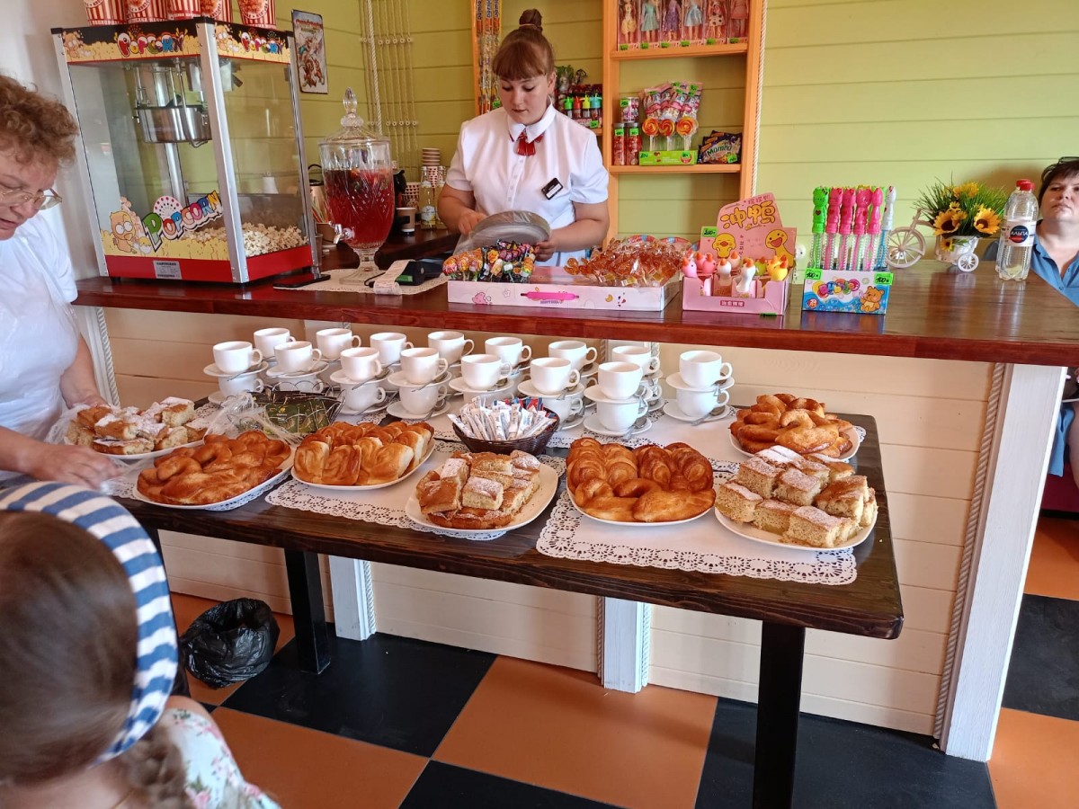 - отдельная кухня( СВЧ печь, холодильник, эл. чайник, кулер с водой, посуда)