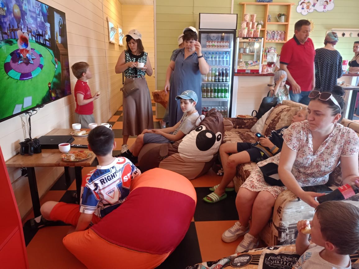 - Просторная гостиная с кухней (холодильник, СВЧ, кулер, чайник, посуда)