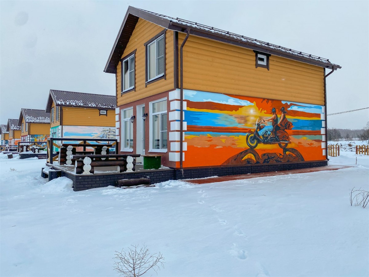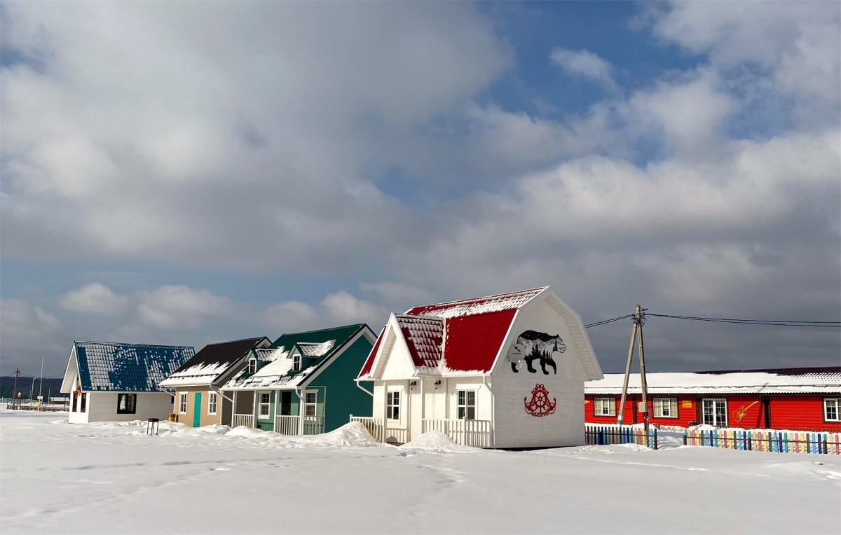 На территории комплекса вокруг VIP озера, на закрытой охраняемой территории расположился поселок, из 30 домов-коттеджей. Четыре дома построены из соснового сруба, в стилистике деревенской избы с единым жилым пространством внутри.