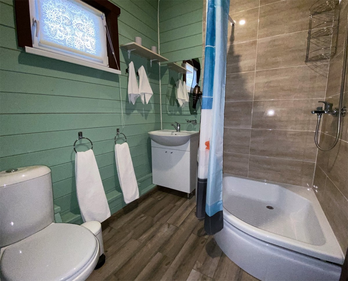 В доме для Вас есть- Санузел с душевой кабиной ( фен, полотенца)