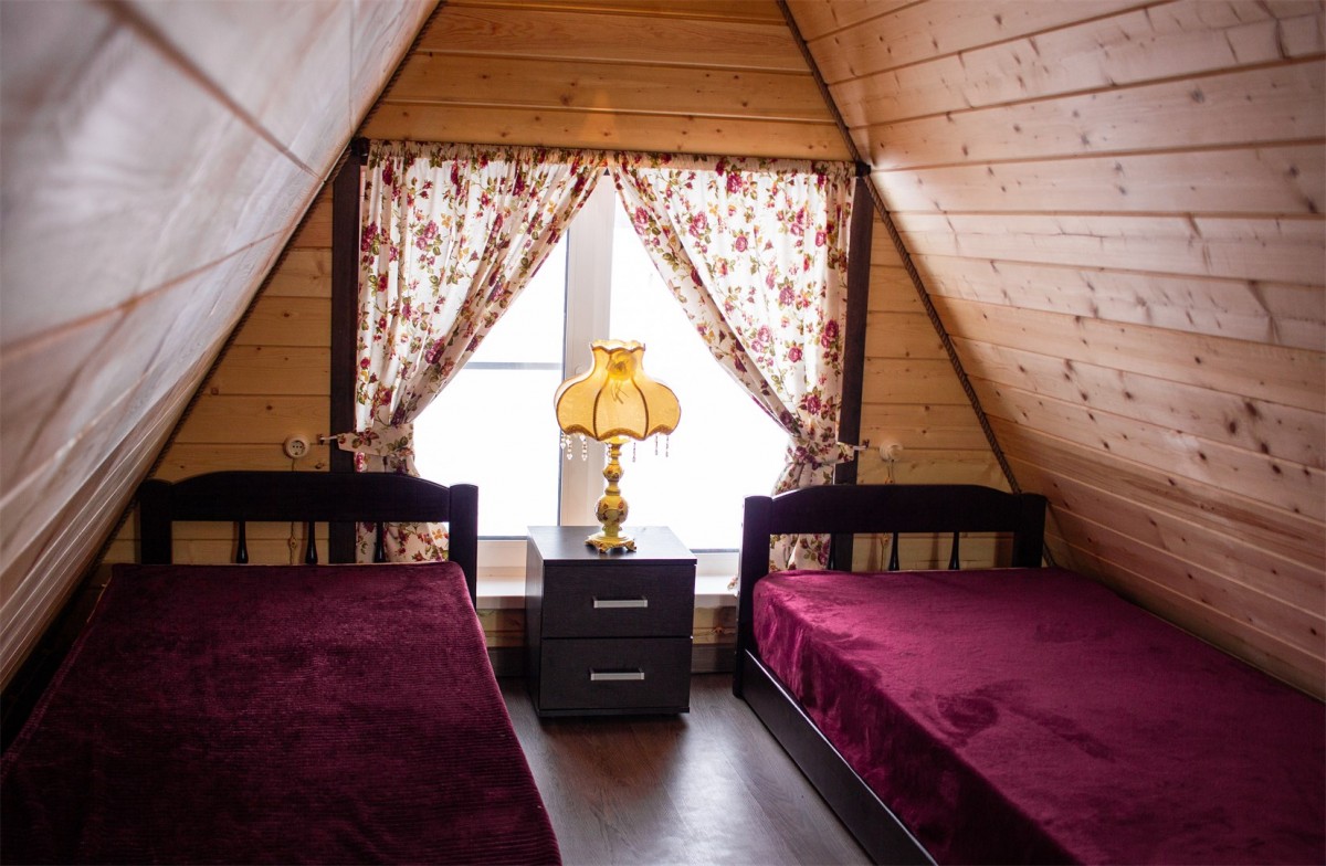 Спальных мест 9 . на втором этаже 2 комнаты. В одной – Три одно-спальных кровати, во второй – 2 х спальная кровать, есть кондиционер. Санузел на этаже. В каждой комнате есть телевизор.
