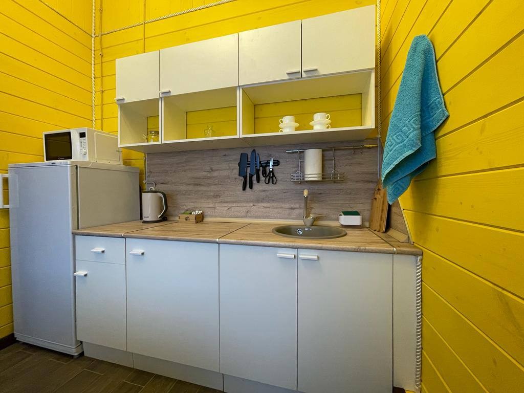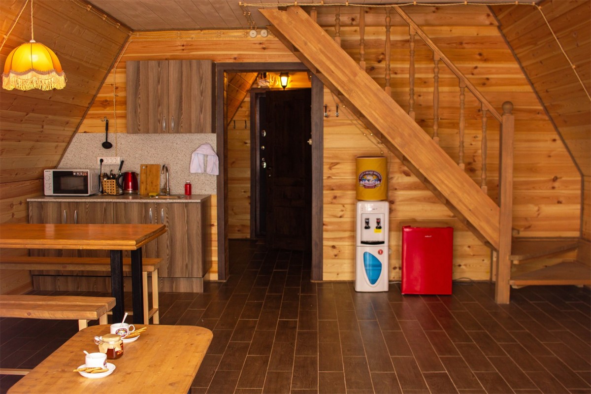 Уютный 6-ти местный дом, имеющий 2 просторные комнаты с высокими потолками, отдельная кухня и санузел.