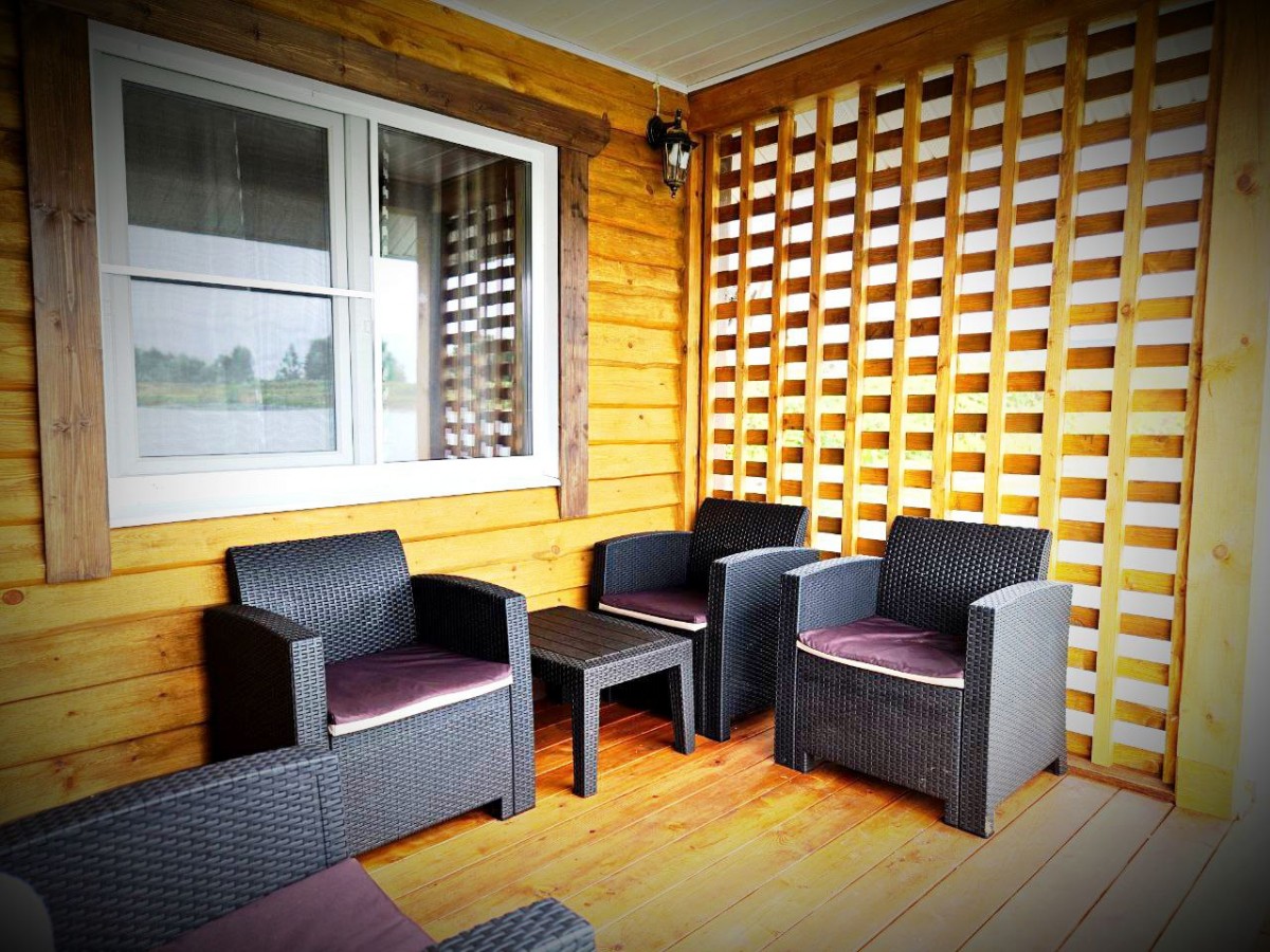Большая веранда с видом на озеро.