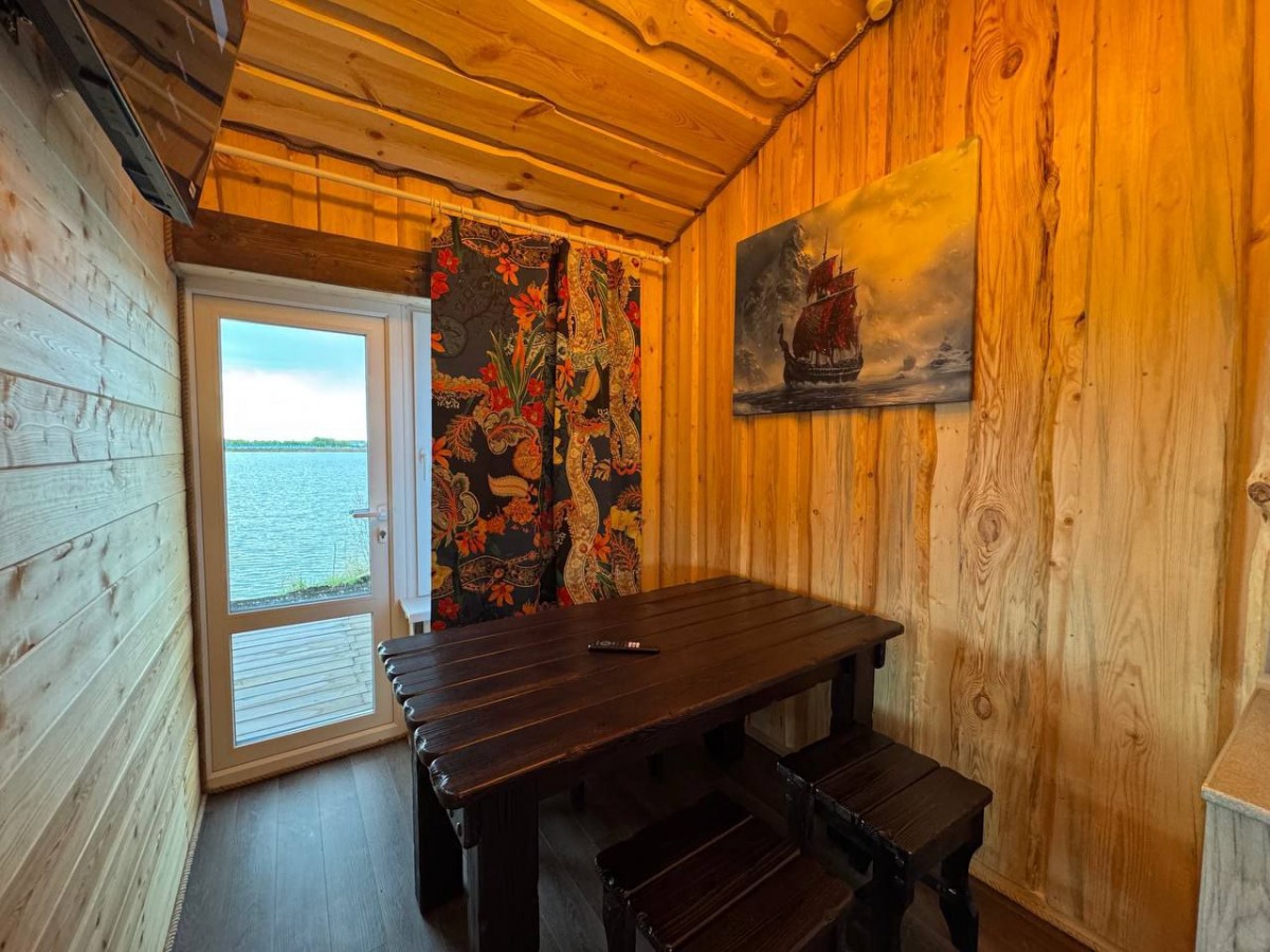 Подробнее про жилье6 гостей2 комнаты6 спальных местВашему вниманию представлен дом "Викинг", расположенный на берегу Рыбацкого озера. Дом имеет просторную террасу. В доме находится 2 комнаты, в одной располагается 2-х сп. диван и 2-х ярусная кровать, в другой 2-х сп. кровать, также имеется просторная кухня и санузел. Дом рассчитан на 6 основных спальных мест. Возле дома отдельный мосток для рыбалки.